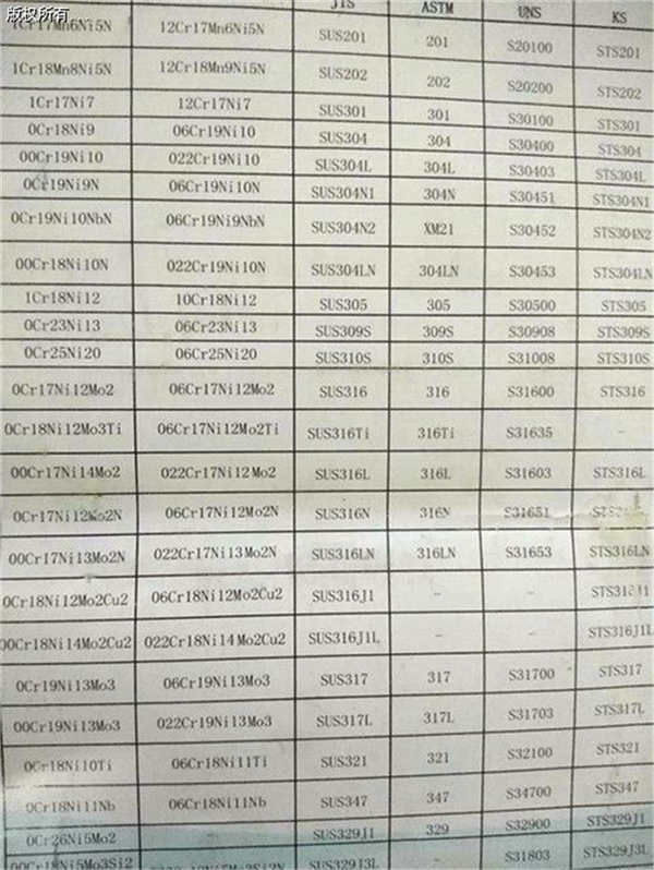 不銹鋼標準